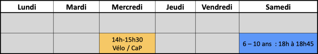 - Cyclisme / Course à pied : 1 sortie groupée vélo / course le mercredi