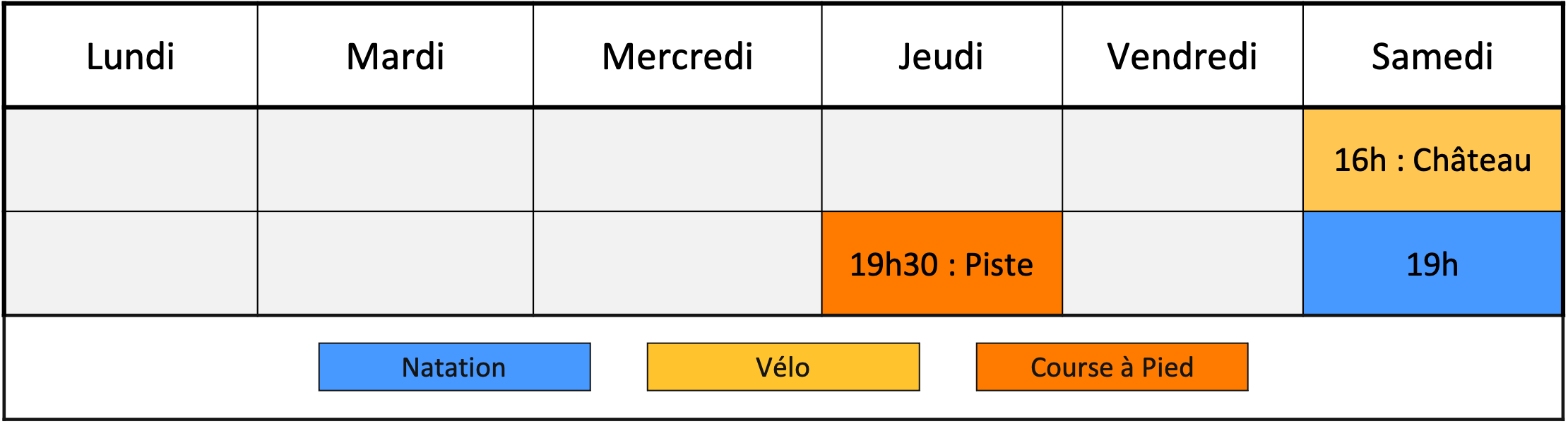 3 entraînements sont proposés par semaine. Aucune obligation de participer à tous les entraînements !